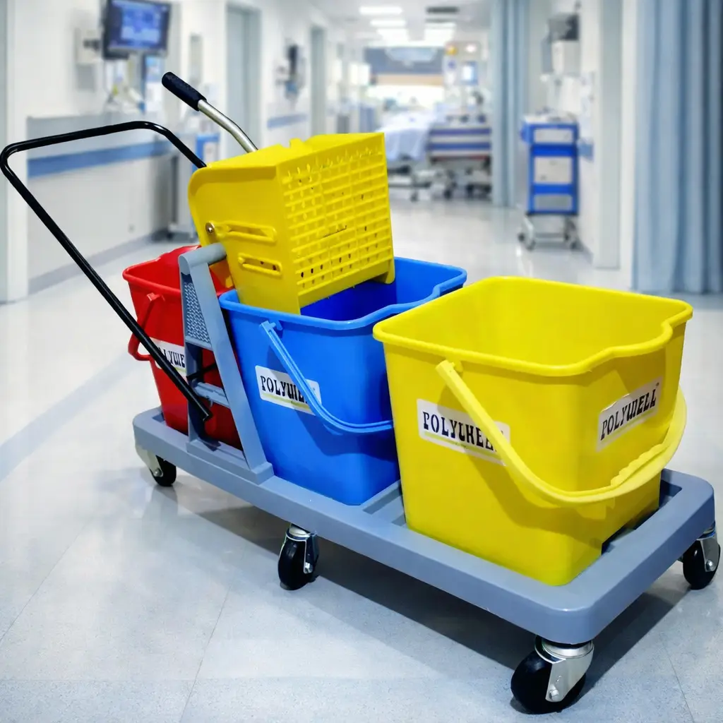 As a trusted Wringer Trolley Manufacturer, we offer a range of trolleys, including 2-bucket Wringer trolleys, hospital-grade trolleys, and industrial cleaning trolleys, all designed for ease of use, durability, and smooth operation.
